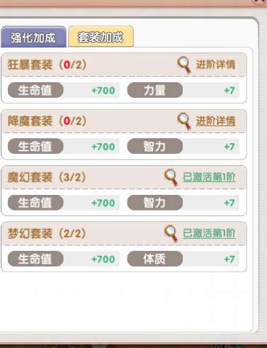 套装效果如同三阶天梯:穿戴两件即可点亮第一阶光芒,随着收集完整,将逐步解锁更强大的力量。每一阶都蕴含着独特的属性馈赠,等待勇士来完整激活。