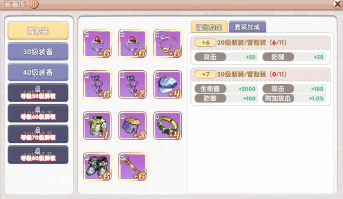 装备库中的装备会带来额外的强化祝福。20级紫装需达到+6强化才能献上这份祝福;30级后,唯有橙色传说装备才有资格提供强化加成,且同样需要达到+6门槛。随着等级提升,这些祝福也会水涨船高:20级装备最高可获+7恩赐,30级可达+8,40级则能攀升至+9。