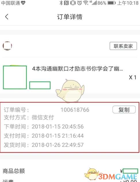 5、向下滑动订单详情界面,可以查看订单购买时间、支付时间、发货时间,以及购买金额等。