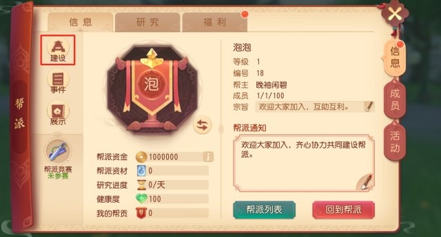 15级之后的少侠,可点击游戏界面的帮派按钮,创建属于自己的帮派。
