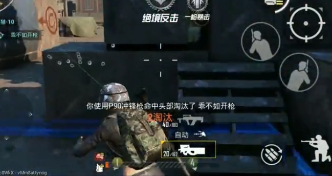 P90虽然能够安装握把配件,但是除了激光瞄准器以外其他握把都不能装上,不过也正因如此,P90成为了腰射超强的冲锋枪。装配激光瞄准器后,凭借超高的射速和精准度,在使用这把枪时几乎都不需要开镜瞄准了,只需要不停移动突突突,打起来非常爽。
