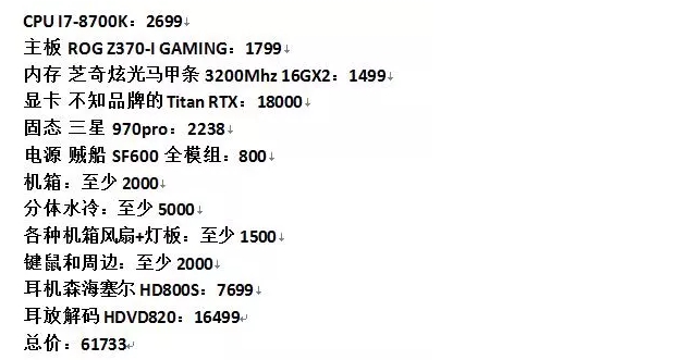 相信愿意整这个级别的电脑的玩家也不会乐意去整二手,键盘鼠标个人和耳机等外设也只是中等,如果要玩音箱或者是大F,可能电脑真的不如一把键盘值钱,甚至不如功放和落地箱的零头。不过一般有3万整电脑的,都不会介意再花3万整外设,所以这也算是个比较合理的消费吧,相信你不会让你的电脑插个街边10块的假逼测污染你的打机环境的。