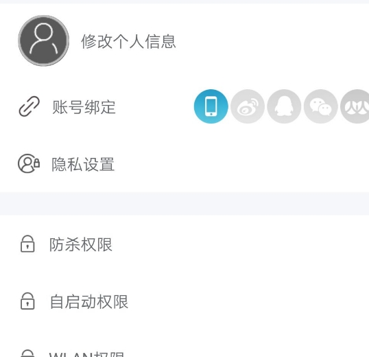 2、在设置功能界面中,可以对软件的权限和个人的信息进行修改,想要完善或者重置个人信息的小伙伴们点击最上方的”修改个人信息“即可;