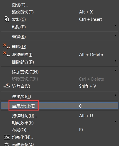 此外还有一种“伪禁止”状态,就是视音频虽然呈灰色状态,却是可编辑的。仔细观察可以发现区别,这种情况是将视音频静音给点开了,只要再点击一次“视音频静音”就可以使素材重现色彩。