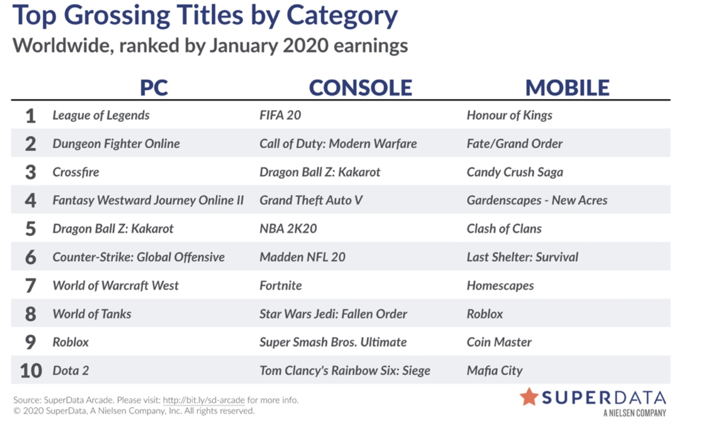 对于玩家而言,游戏最重要的就是好不好玩。而游戏开发商和投资方最在意的就是这款游戏赚不赚钱。近日Superdata发布了2020年1月份月度报告,本次PK手游网东东就带大家来看看2月的游戏月度报告。
