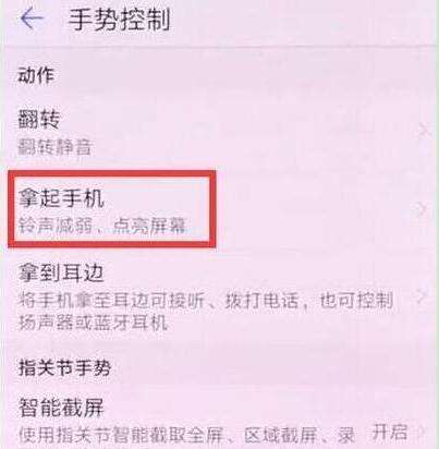 在手势操作菜单下点击打开【拿起手机】,