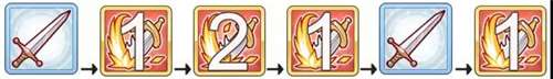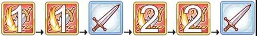 BOSS技能循环顺序:(只有一把剑的图标代表平A,有1、2标识的图标代表BOSS的1、2技能)