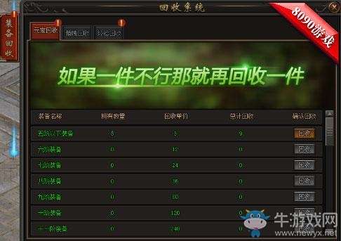 装备回收可回收装备并获得绑定元宝、精魄或经验。装备打的多,元宝给的多。游戏中的绑定元宝可购买绝大部分商品,我们很良心,不坑。尤其是随着主线任务进入的高阶地图,BOSS超多,满屏BOSS,必爆装备。