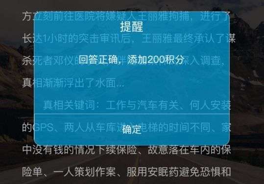 2、游戏是有倒计时的,玩家在有限的时间里,提前完成游戏侦破题目,倒计时剩余的时间就会换算成积分给到玩家作为奖励。