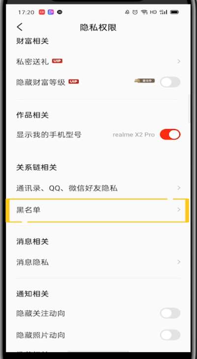5、下滑找到黑名单进入即可