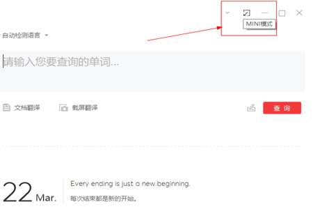 首先我们打开登陆有道词典软件,点击软件右上角的MINI模式即可。