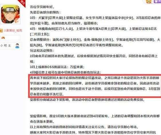 而在昨天大家看到了漂泊武士白的部分技能演示后就感觉这个忍者会是8月份的限定,毕竟到现在这个时间段了还没有公布8月限定消息,你现在曝光了一个新忍者的消息,不就是对应了8月份的限定忍者吗?其实这个场景很像当初新春雏田爆料的阶段,同样是在1月底的时候展示了技能,但2月份的限定并不是她,而是延续了旧限定回归。当初还有很多人发帖吐槽,认为限定忍者周期临时改动不太妥当,关于这件事情,后来帕克在预告里提到过,这也在暗示修改了新限定忍者的上架周期。