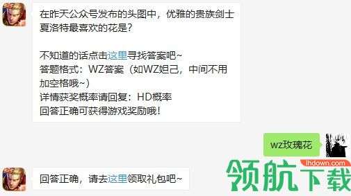 今天王者荣耀每日一答的题目是:在昨天公众号发布的头图中,优雅的贵族剑士夏洛特最喜欢的花是,下面小编为大家带来今日份答案,每日持续更新,欢迎大家继续关注我们!