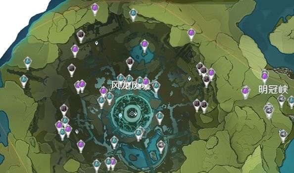 在风龙废墟中,资源点也是非常丰富的,例如风神瞳、宝箱、水晶、风车菊等等,