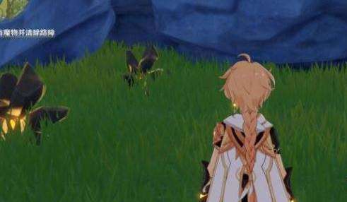 沿路继续下山,可以看到2个石像守卫,这时小地图应该可以看到第2个岩瞳了,右侧石像的头上会有个小仙灵。(我这是已经完成的状态了)