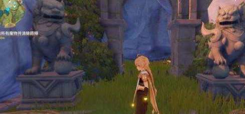 石狮前有2个触发机关,单人的话小技巧用岩主放桶比较简单(其他角色也可以就是技能持续时间比较短)。