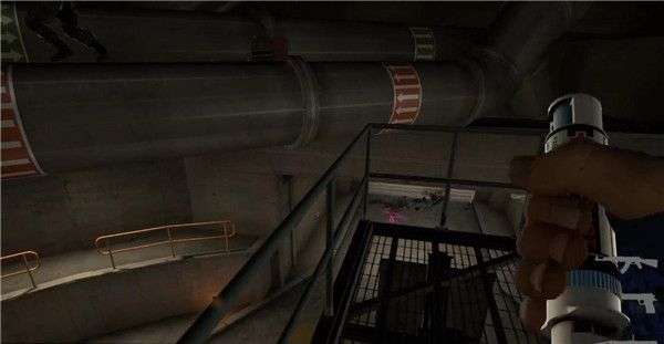 打完之后,剧情进入尾声,从栏杆上跳上大管道上方蹲着坐电梯离开,电梯到顶后房间右手还有一个敌人,记得解决掉,然后即通关