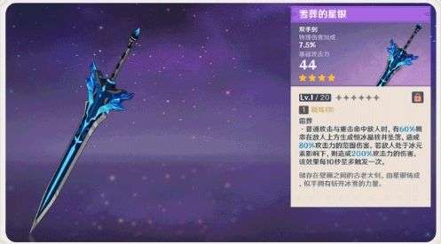 2.活动期间装备此剑者,在「龙脊雪山」地区时,严寒累积速度降低,并在攻击「龙脊雪山」地区的敌人时,暴击率提升;