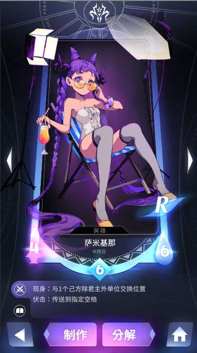 阿加雷斯是所罗门阵营的SSR卡牌,配合翻开盖牌的操作可以成长为极大的身材,给敌人较大的压力,但是阿加类似初始身材的孱弱正式其最大的缺点,但有了萨米基那时情势就会发生改变,我们可以选择让阿加雷斯在安全的角落里慢慢成长,然后使用萨米基那与阿加雷斯交换位置来接近敌方君主,给与敌方君主沉重的一击。