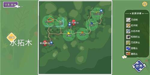 1.水拓木一般分布在【月影密林】地图,具体位置如下图: