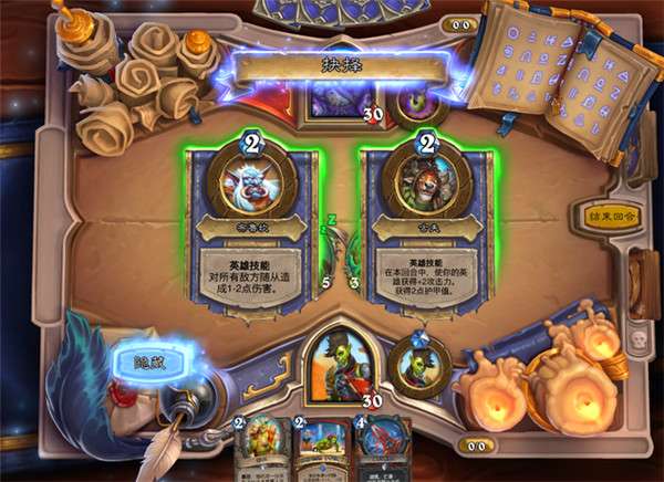 队伍里老师布鲁坎的技能是随机对所有敌方随从造成1-2点伤害,古夫的技能是加强版德鲁伊的技能获得两点攻击力和两点甲,塔姆辛的技能是召唤一个3/2的小鬼,晨拥的技能是冻结一个随从,目前来看塔姆辛的技能最实在最好用,毕竟炉石传说这个游戏,站场非常的重要。不过不知道是不是选择了某个技能,对战过程中对话和彩蛋就只会和那个佣兵进行,因为清风拿到塔姆辛的技能后,一直用的她的技能,然后我就再也没听到古夫这个逗比说过话了,看来想要听完所有对话,还得多打几遍。