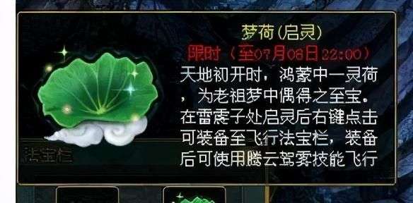 玩家需要拥有未经过启灵的梦荷,梦荷可在地府相关系统中获得。将梦荷提交给雷震子进行启灵,在启灵过程中,消耗3天的位列仙班时间,即可获得新的飞行法宝---御天梭。