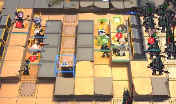 6.左路萨卡兹组长抵达正面后用砾吸引下仇恨,然后下快速复活和先锋激活右边的萨卡兹(如下图所示顺序)。