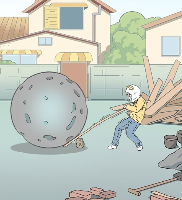 3.对着大石头使用小石头,对着小石头使用木板,本关的任务就完成了,恭喜少年顺利通关。