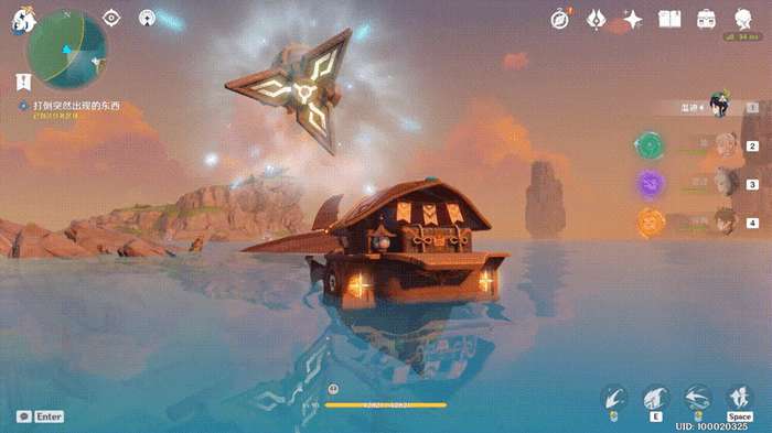各位旅行者想必对这个东西并不陌生,它就是在龙脊雪山也出现过的「机关守卫」。机关守卫的血量约为1w7左右,会使用冰属性的三连击。我们不用下船,直接使用浪船的平A和E技能即可将其快速击败。