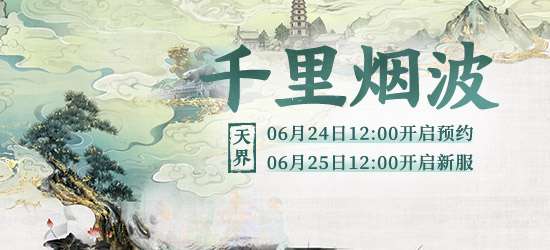 烟波千里路,江湖浩渺间。2021年6月25日12:00,《大话西游2经典版》多线新服【千里烟波】虚席以待,与您相约人界不见不散。天高地阔,烟波浩渺,就让我们放下尘俗愁绪,与三两好友相邀同行,再次启程书写属于自己的江湖故事!