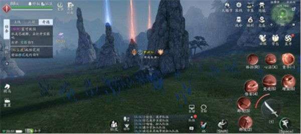 周围石柱上会出现红、蓝两种颜色的光柱,需要先跳到红色光柱上去,触发第二阶段的任务目标,然后再去触碰仅有的一个蓝色光柱,最后前往最高的一个红色光柱处,坐标为(429,784)。破解光柱机关后,后续继续自动寻路即可完成锦鲤奇遇。