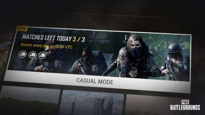 全新推出的休闲模式将会让你抛开负担轻松畅玩PUBG!休闲模式每天最多可以进行3场比赛,玩家可以选择独自游玩或组队参加。还在等什么,快来这个AI多多的模式中展现你的实力吧!