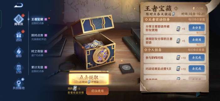 在活动中找到“使用好友分享的王者密语”,点击,输入王者密语,即可。