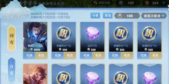 小编初次开启得到了貂蝉288皮肤异域舞娘、永久英雄孙策、10/60积分、300钻石等奖励,其中兑换貂蝉288皮肤需要6000芳华币,兑换孙策需要4000芳华币,想来大家会优先换取皮肤。而好消息是官方还设置了卡牌重置次数,玩家每日完成任务可得到重置机会,比如小编不喜欢貂蝉皮肤,将其重置后又变成了曹操的超能战警皮肤,若还是不满意的话可以继续重置想要的皮肤。另外兑换商店还有日常兑换奖励,包含了积分夺宝券、机关派对回城宝箱、荣誉之战击败宝箱等奖励,不过相信大家不会将芳华币浪费在这些局内表现上。