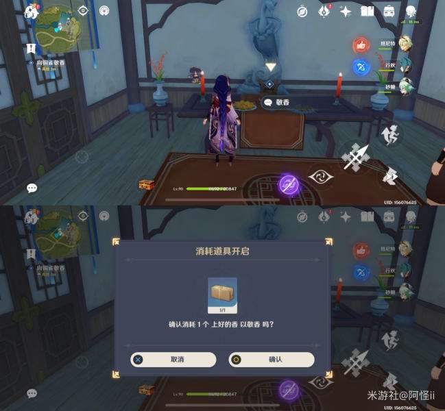 3、对话完毕,王平安让我们敬香,点击‘敬香’即可完成任务