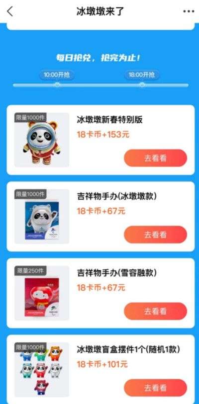 2、兑换冰墩墩和雪容融的限量款需要用户使用一定数量的卡币
