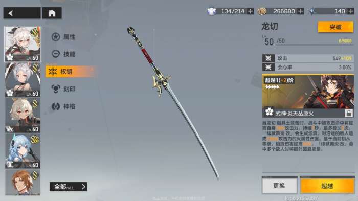 4.权钥升级=(每个伙伴都需要给自己的专属武器升升级)