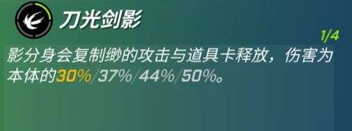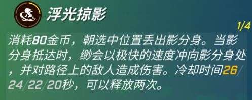 缈挥出影之刃,释放影分身,闪烁穿梭过半个战场,并对穿过的敌人造成多段伤害。
