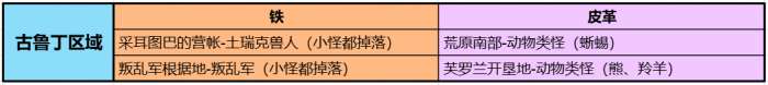 前面我们也提到,支线任务需要我们做6件指定的高级装备,这些装备主要的原材料是铁和皮革,我们可以先以获取这六件装备的制作材料,作为首日基础挂机的目标。
