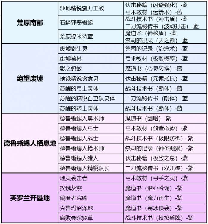 大佬们可以去小怪强度高一点的区域刷紫色技能书,那边击杀小怪所获得的经验也会更多!
