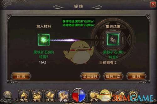 两个相同纯度的黑铁矿石,可以提纯成下一级别纯度的黑铁矿石。提纯成功率为100%。