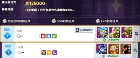 关卡特性:每一关包含 1-3 个回合,各关卡有专属属性限制,使用指定属性饼干战斗,还能获得额外属性伤害加成。