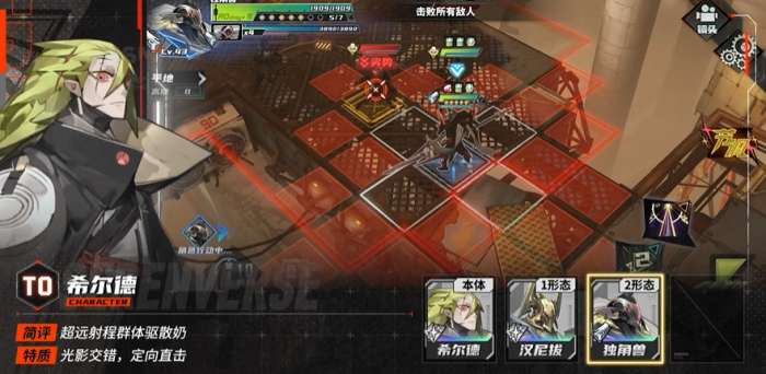 2形态独角兽,主打控制和固伤辅助,1技能的定身效果,能用来克制高威胁的近战目标。触电伤害需要敌方行动结束后才能触发,很不好用。推荐等出触电体系大C,再考虑解锁2形态。