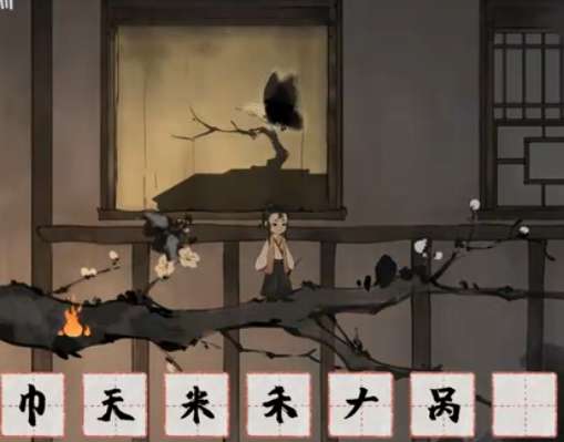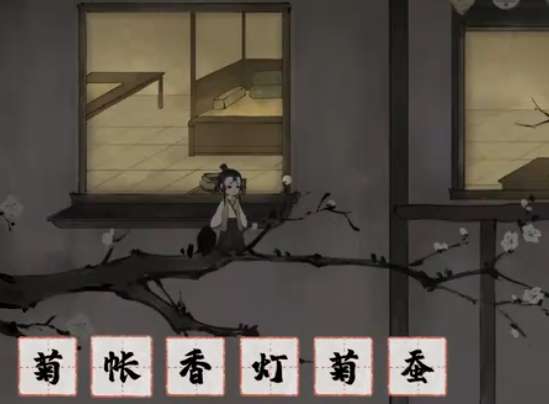 《栖云异梦:梦蝶》第十三关“蛾火”需帮助蚕完成蜕变。首先收集【蚕】、【菊】等物品。拆解【窝】与【帐】得【帘】,遮盖蝴蝶。将【菊】与【蚕】拆解组合成【茧】。拆解另一【菊】得【勹】,【香】得【日】,合成【旬】对茧使用,使飞蛾破茧。拆解【灯】得【火】,调整飞蛾影子与蝴蝶重叠。最后用【长】延伸树枝即可离开。