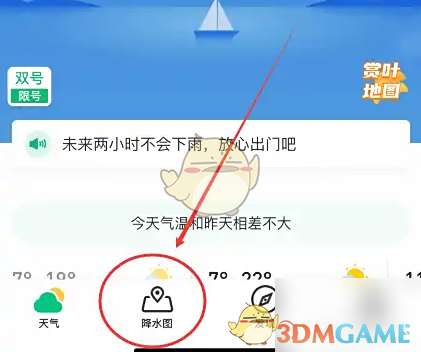1、打开手机上的彩云天气APP,点击左下方将水图。