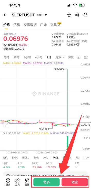 3、输入【SLERF】,这时下拉会显示合约SLERF USDT,点击【SLERFUSDT】。