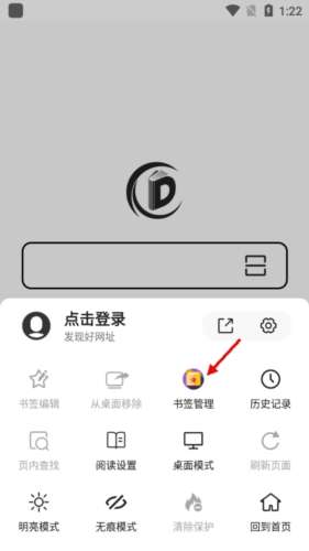 3、进入新窗口后点击下方的“书签管理”,这是管理全部书签的地方。