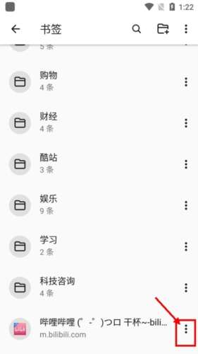 4、在“书签管理”窗口中,可以看到自己账号内收藏的全部书签,选择一个要删除的书签,点击三个点。