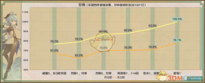 星鹫赤羽在单冰队伍中通常是期望最高的武器或之一,甘钟香班融化队伍中,同为精1时相对若水、阿莫斯之弓等武器提升约10%~15%;双冰队伍中则与最初的大魔术相近,具体受技能占比与加成情况影响。