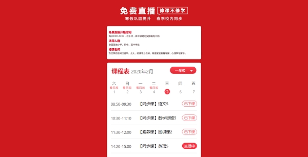 3、目前学而思网校开放了停课不停学课堂,用户可以通过官网首页上的推荐进入学习,目前该课堂学习并不支持回放功能。